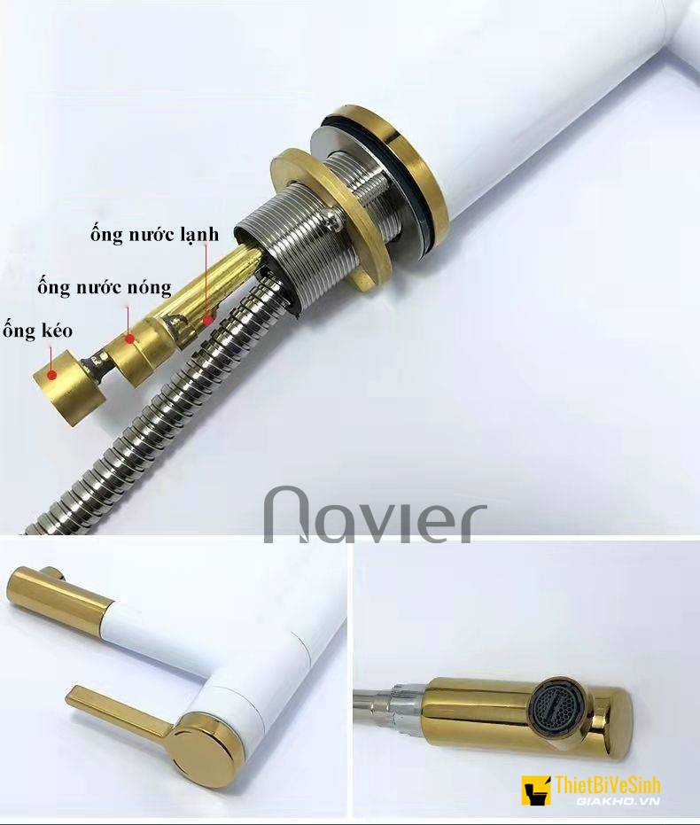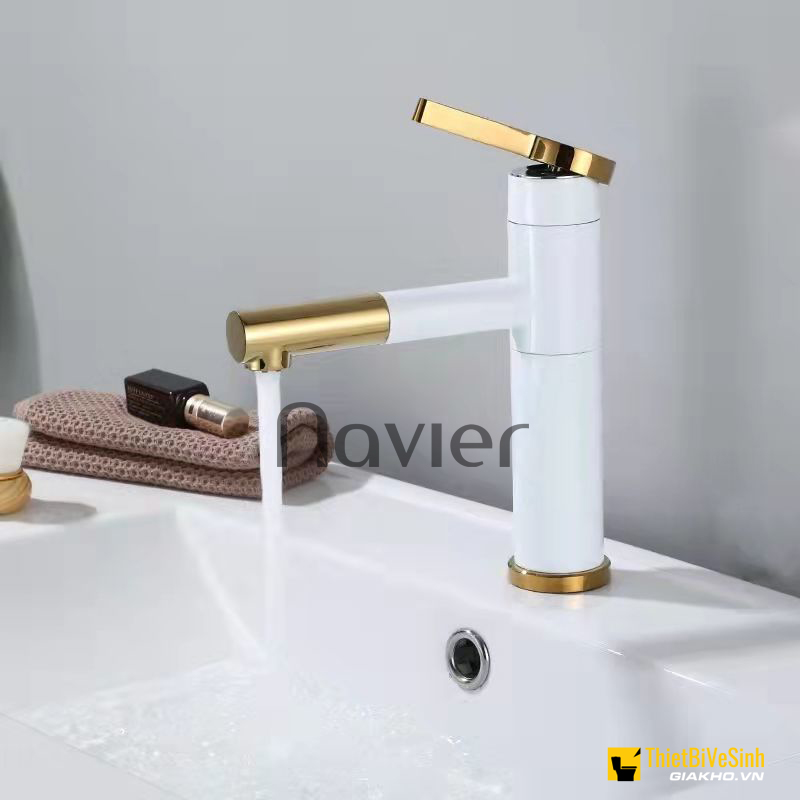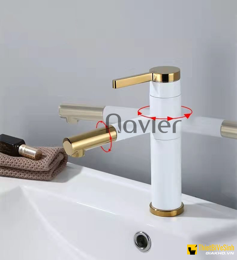Vòi lavabo nóng lạnh xoay 360 sơn tĩnh điện trắng viền vàng Navier NV-704TV Đặt online giảm 100.000 đ