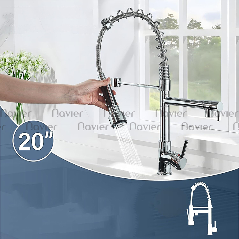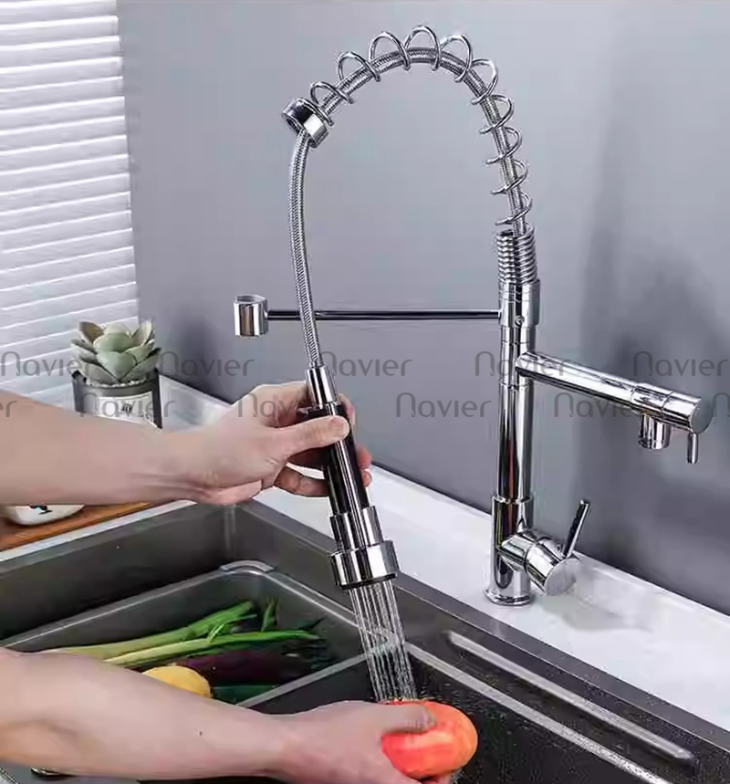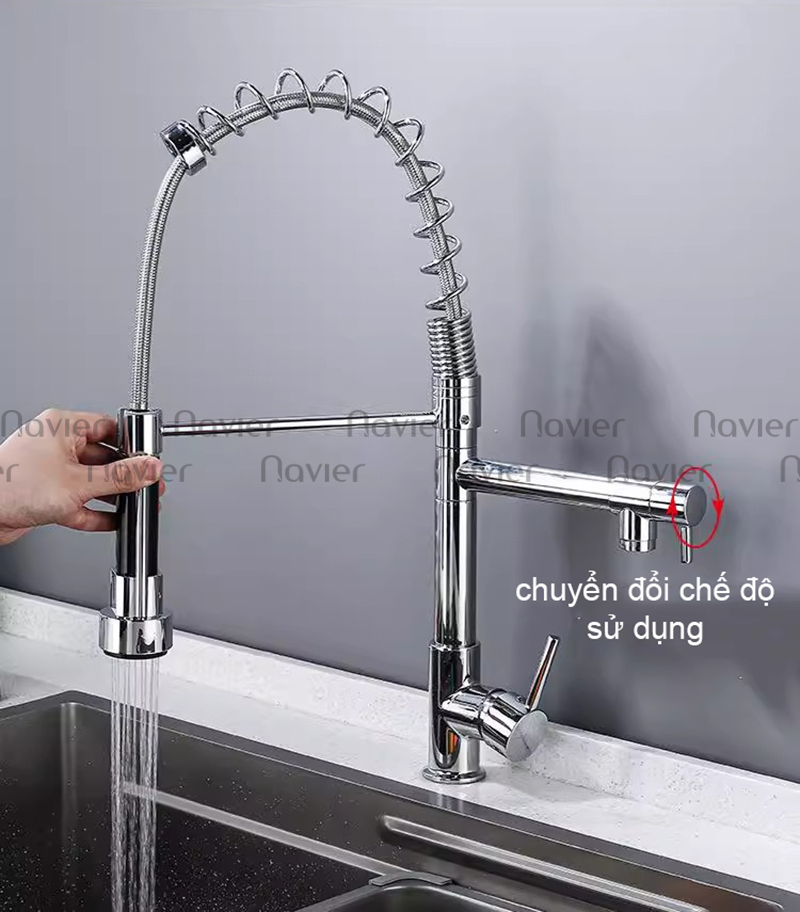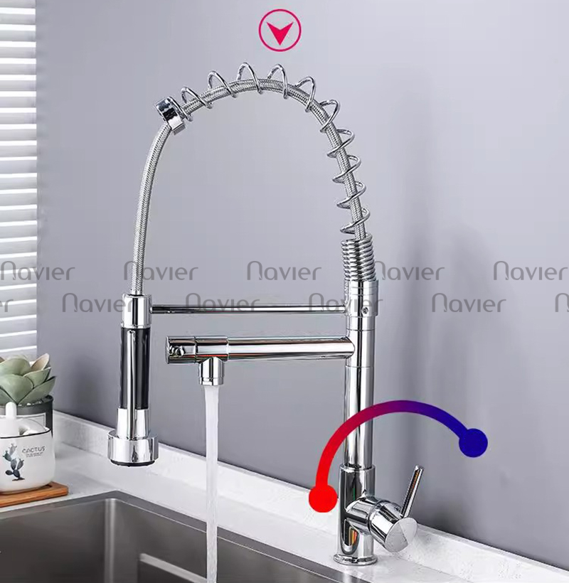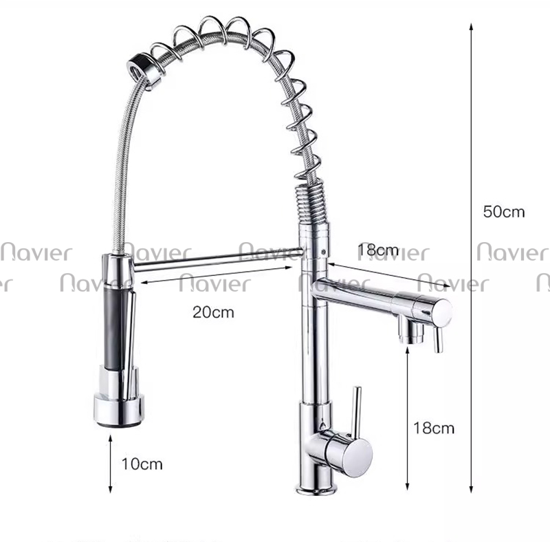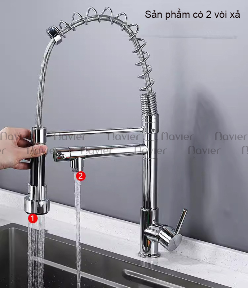 Vòi rửa chén lò xo kép đồng thau mạ Crom Navier NV-213