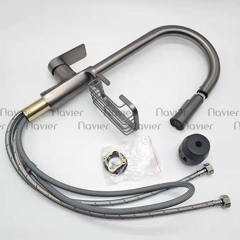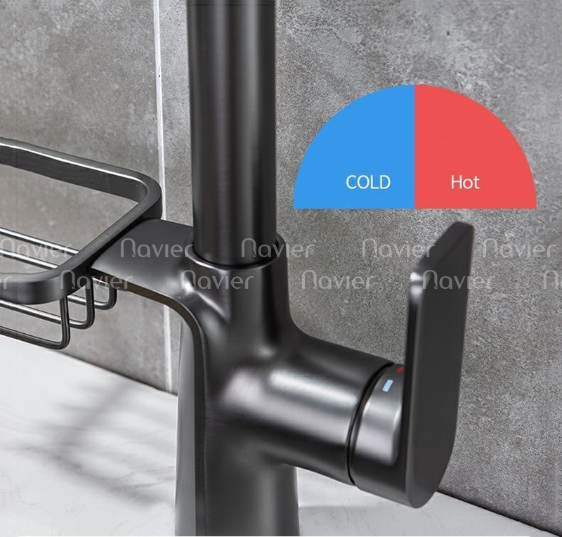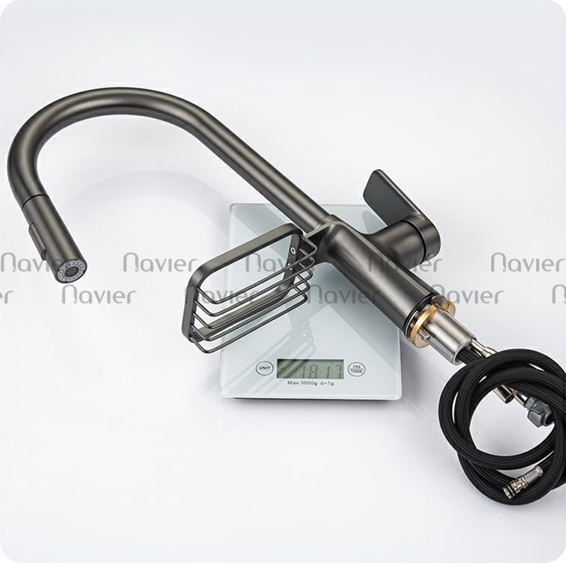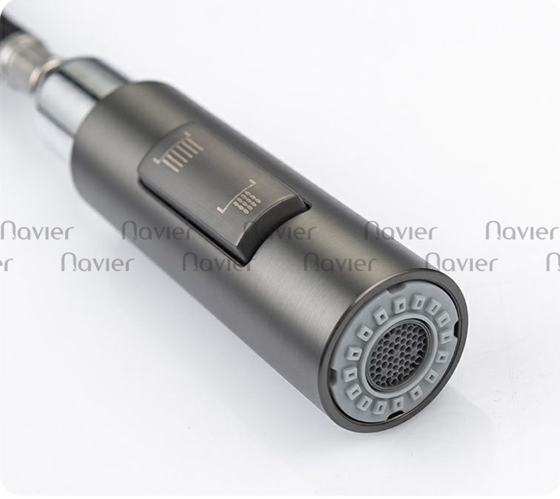 Vòi rửa chén nóng lạnh đầu rút xám cao cấp Navier NV-229X