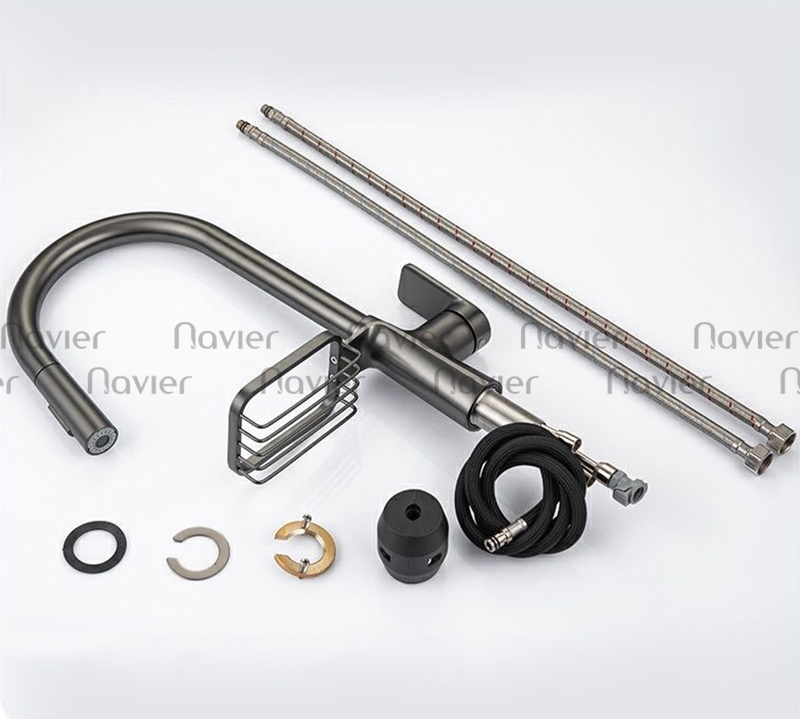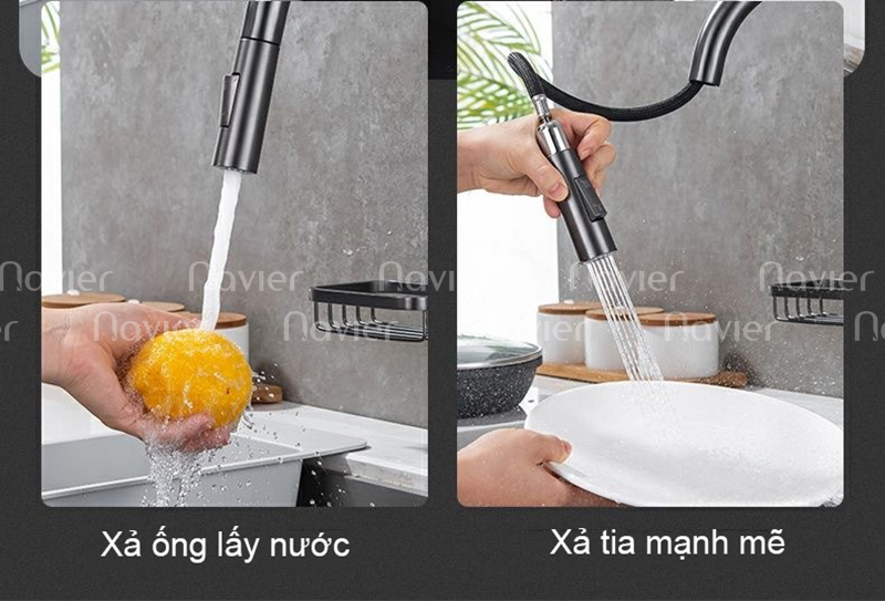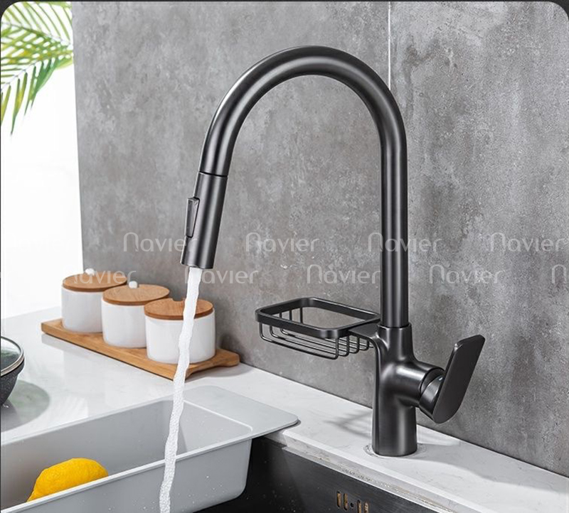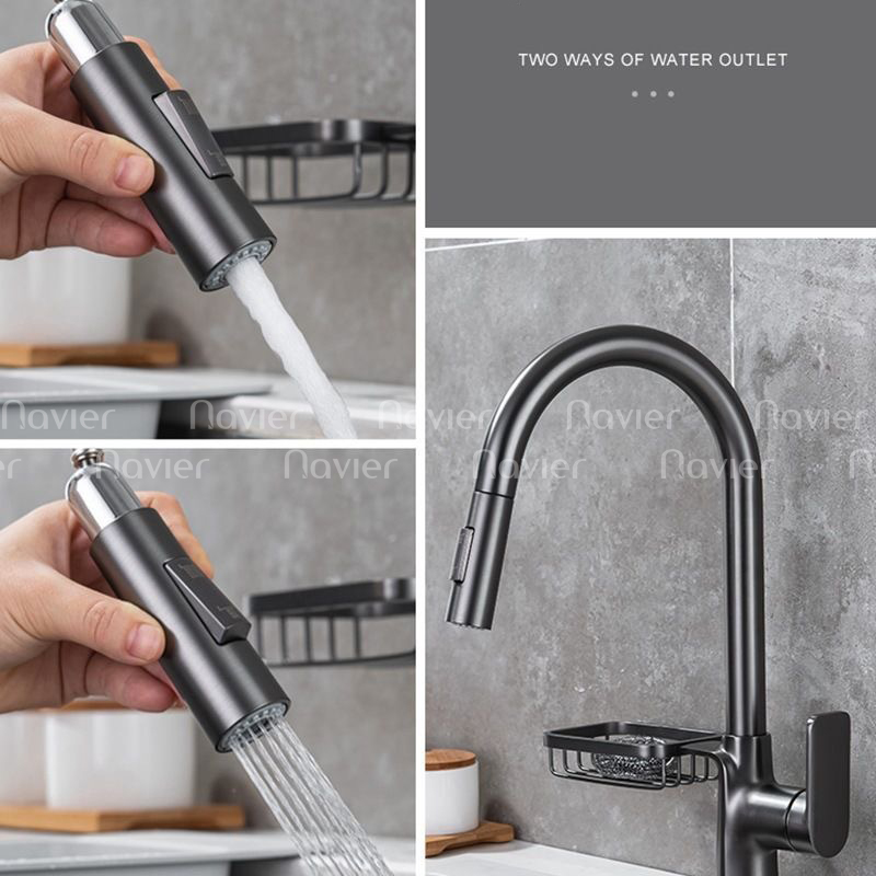 Vòi rửa chén nóng lạnh đầu rút xám cao cấp Navier NV-229X Đặt online giảm 200.000 đ